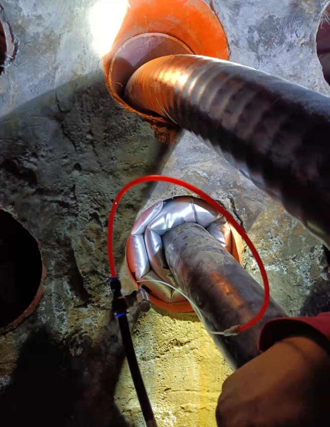 1)管線進出孔:采用柔性密封氣囊封堵管道孔洞,避免出現(xiàn)管道接口密封不嚴或管道破裂產(chǎn)生的土層滲水。